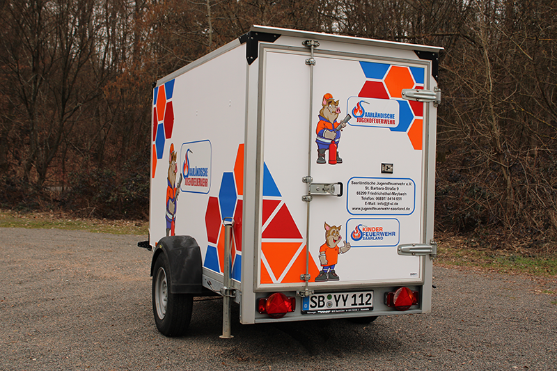 Auf dem Spieleanhänger ist alles praktisch verstaut und ihr habt sogar noch Platz eigene Materialien damit zu transportieren. Zu eurer Sicherheit findet ihr einen Erste-Hilfe-Kasten, eine Pflasterbox und eine Löschdecke. Für die Gemütlichkeit gibt es auch noch eine Biertischgarnitur.